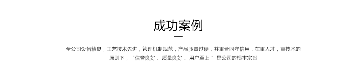 全公司設備精良,管理機制規(guī)范,產(chǎn)品質量過硬,并重合同守信用,在重人才,重技術的原則下,“信譽好 、質量標準 、用戶至上 ”是公司的根本宗旨。公司上下,團結一致,把不斷完善并持續(xù)改進質量管理體系作為公司永恒的追求。